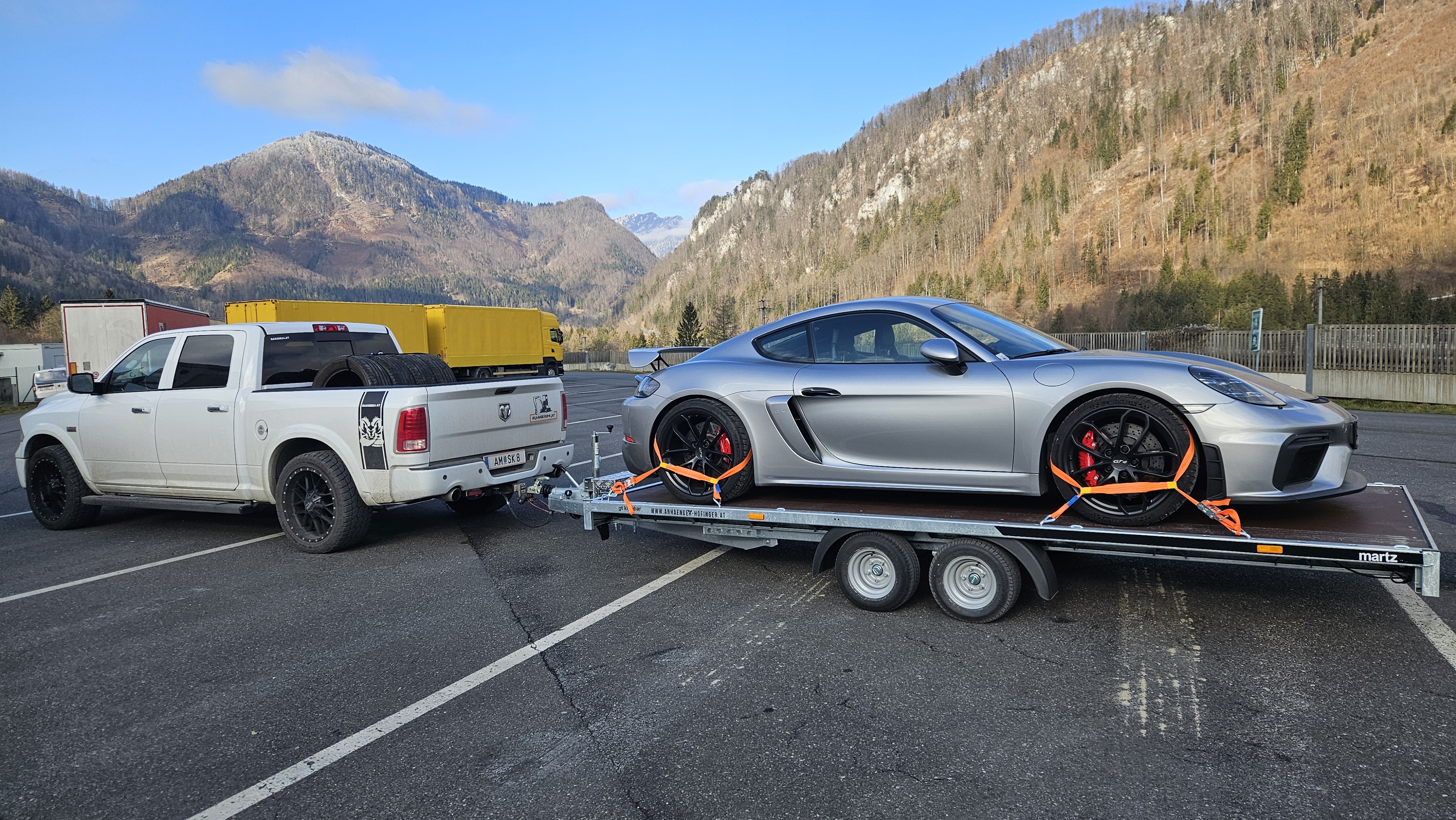 Wir bringen dein Motorrad oder deinen PKW zur Werkstatt, deine Holzpellets nach Hause oder den Bagger zu dir auf die Baustelle.